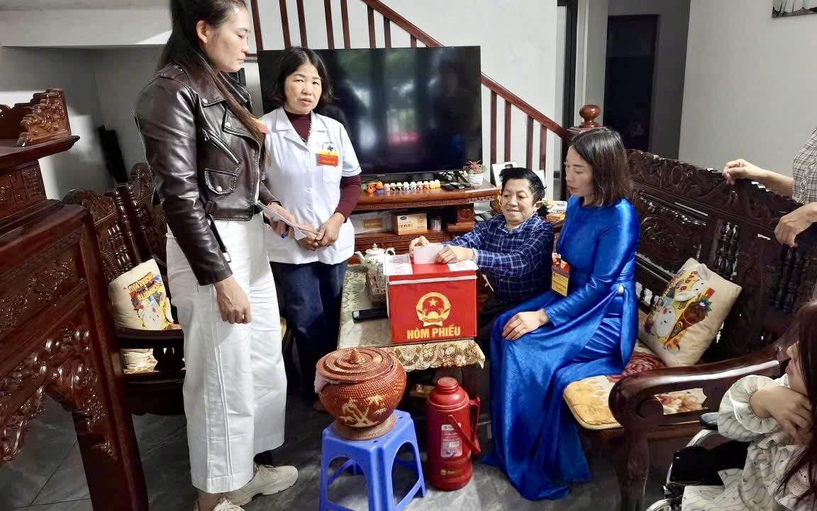Tại gia đình các cử tri, Tổ bầu cử đã thực hiện đầy đủ, đúng quy trình theo quy định: giới thiệu thành phần tổ công tác, kiểm tra danh sách cử tri, phát phiếu bầu và hướng dẫn cử tri thực hiện quyền bỏ phiếu. Quá trình bỏ phiếu được tiến hành nghiêm túc – dân chủ – đúng pháp luật, bảo đảm nguyên tắc trực tiếp, bỏ phiếu kín.