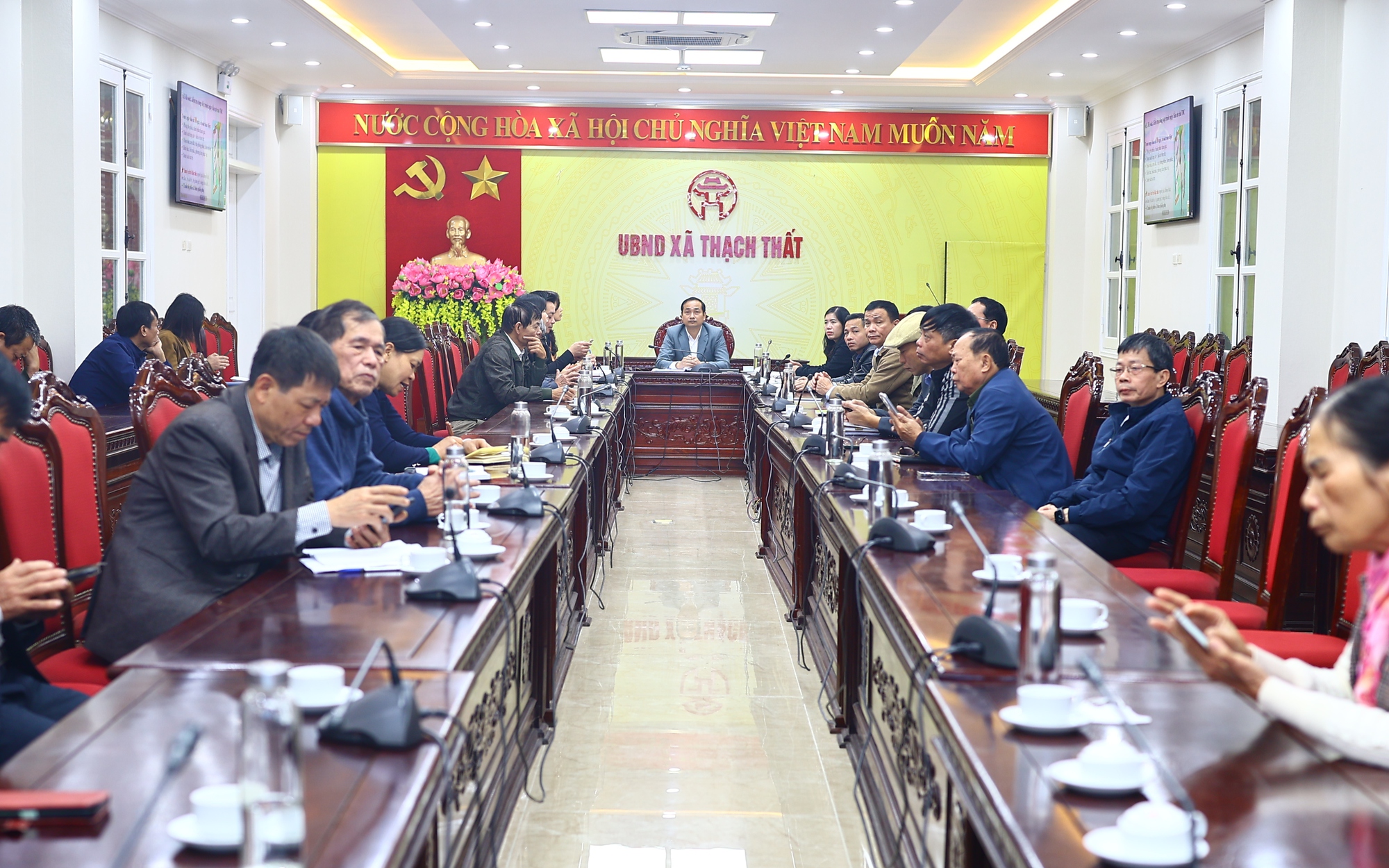 Tại điểm cầu xã Thạch Thất, dự hội nghị có đồng chí Nguyễn Doãn Luỹ – Ủy viên Ban Thường vụ, Phó Chủ tịch UBND xã; các thành viên Ủy ban bầu cử xã; lãnh đạo, công chức các bộ phận liên quan gồm Phòng Văn hóa – Xã hội, Văn phòng HĐND – UBND xã; cùng Tổ trưởng, Tổ phó các Tổ bầu cử trên địa bàn xã.