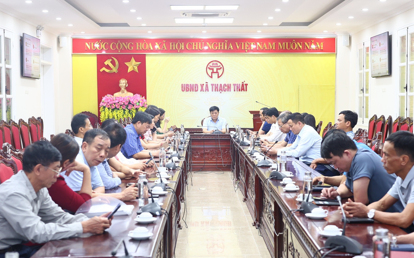 Dự hội nghị tại điểm cầu xã Thạch Thất có đồng chí Nguyễn Đăng Quân - Phó Bí thư thường trực Đảng uỷ xã; các đồng chí Ủy viên Ban Thường vụ Đảng ủy, Thường trực HĐND, lãnh đạo UBND, Ban Thường trực UBMTTQ Việt Nam xã. Cùng dự có các đồng chí trong Ban chỉ đạo Bầu cử xã, Ủy ban bầu cử xã; Bí thư các Chi bộ, Trưởng ban công tác mặt trận, Trưởng các thôn, Tổ dân phố trên địa bàn xã và đại diện lãnh đạo các phòng, ban, ngành liên quan.