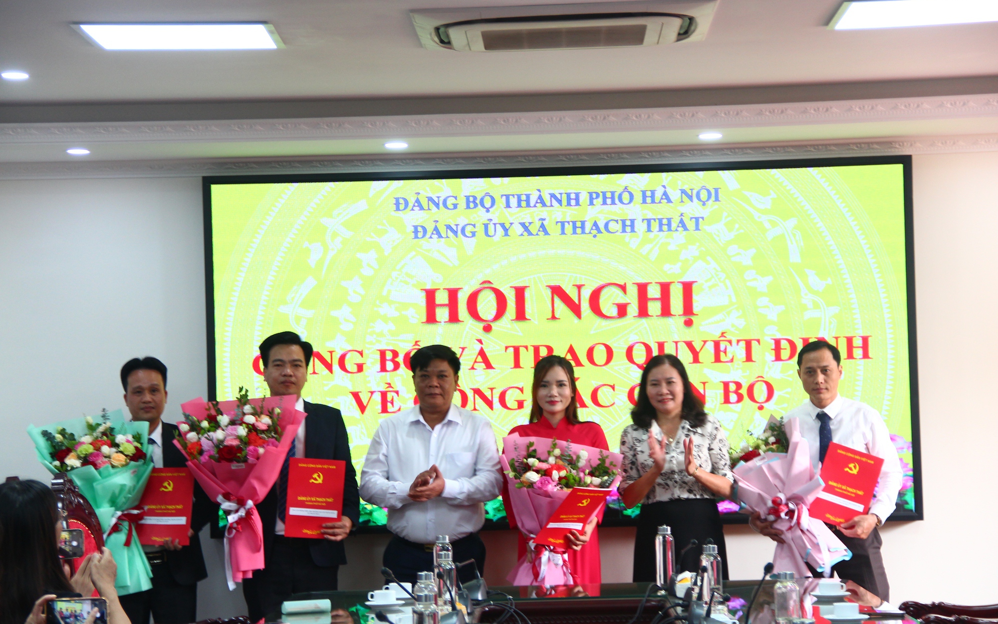 Tiếp đó, đồng chí Nguyễn Thị Minh Phương công bố các Quyết định của UBND xã Thạch Thất: Quyết định số 1479/QĐ-UBND về việc bổ nhiệm đồng chí Vương Văn Đạt giữ chức Phó phòng Kinh tế; Quyết định số 1478/QĐ-UBND về việc bổ nhiệm đồng chí Nguyễn Thị Hương giữ chức Hiệu trưởng trường Mầm non Lại Thượng; Quyết định số 1475/QĐ-UBND về việc điều động và bổ nhiệm đồng chí Kiều Thị Lý giữ chức Phó Hiệu trưởng trường Mầm non Kim Quan; Quyết định số 1480/QĐ-UBND về việc bổ nhiệm đồng chí Nguyễn Thị Thúy Hằng giữ chức Phó Hiệu trưởng trường Mầm non 19.5; Quyết định số 1476/QĐ-UBND về việc bổ nhiệm lại đồng chí Đỗ Thị Nga giữ chức Phó Hiệu trưởng trường Tiểu học Lại Thượng; Quyết định số 1477/QĐ-UBND về việc bổ nhiệm lại đồng chí Phùng Thị Thơm giữ chức Phó Hiệu trưởng trường Tiểu học Liên Quan.