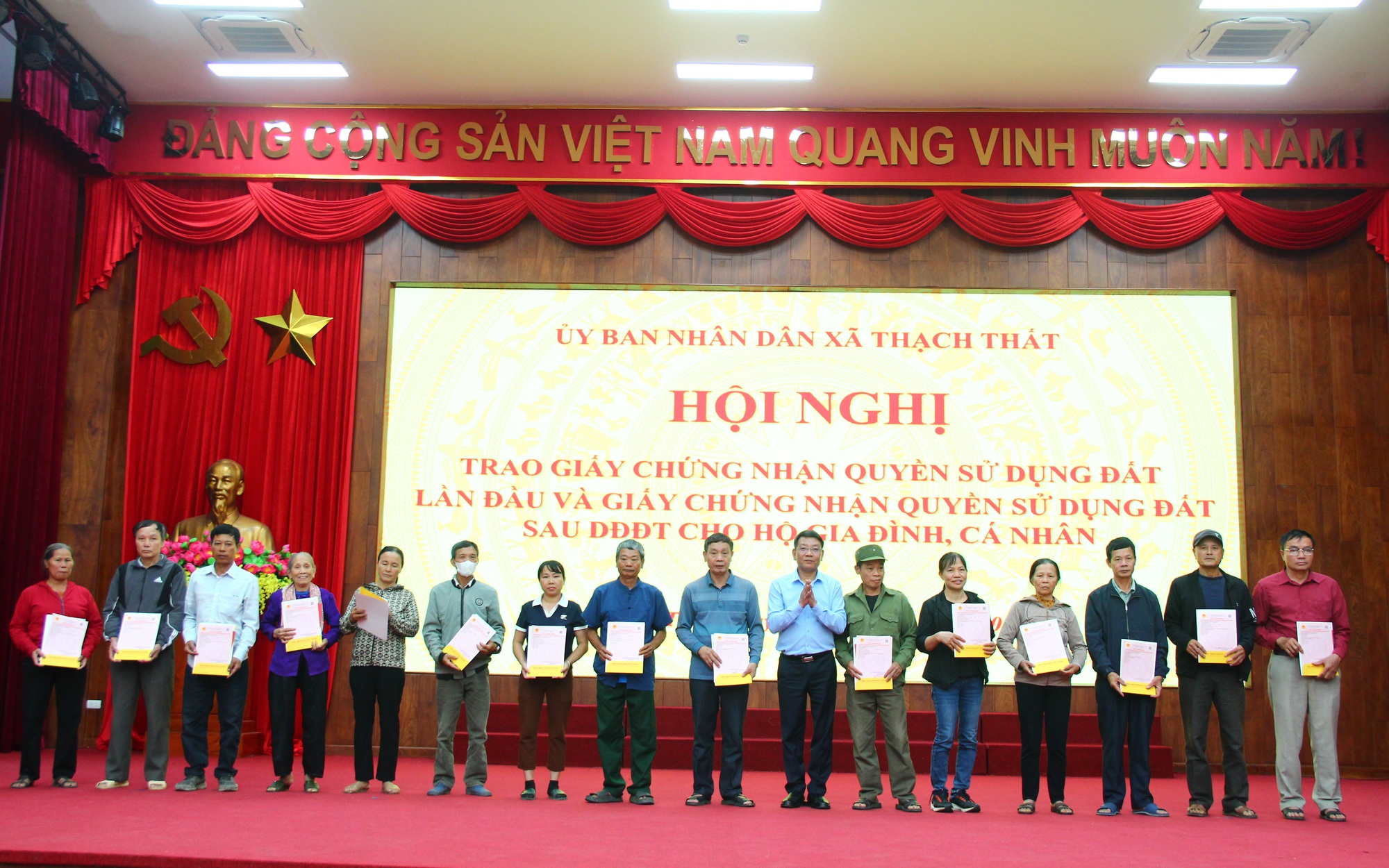 Đây là lần thứ 2 xã Thạch Thất tổ chức hội nghị trao GCNQSDĐ lần đầu cho nhân dân, trong đợt này đã có 130 giấy chứng nhận được trao thuộc các xã Kim Quan, Lại Thượng, Cẩm Yên cũ.