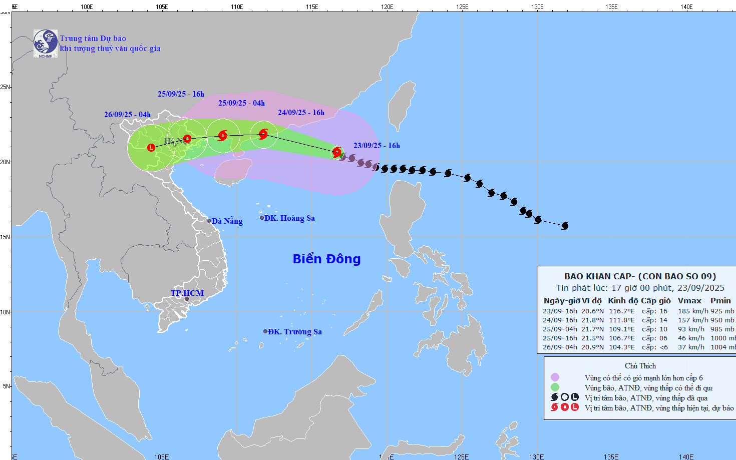 Một ngày sau, bão trên vùng biển phía đông bán đảo Lôi Châu, sức gió giảm còn cấp 14 - 15, giật trên cấp 17. Sau đó, bão chuyển hướng Tây Tây Nam và đi vào Vịnh Bắc Bộ. Do ảnh hưởng của siêu bão, cơ quan khí tượng xác định cấp độ rủi ro thiên tai cấp 4 trên thang 5 cấp đối với vùng biển phía đông Bắc Biển Đông. Khu vực biển này gió mạnh dần lên cấp 8 - 9, sau tăng lên cấp 10 - 14, vùng gần tâm siêu bão đi qua cấp 15 - 17, giật trên cấp 17, sóng biển cao trên 10 m. Dự báo trong ngày 25 - 26/9 thành phố Hà Nội sẽ có mưa mưa to, có nơi mưa rất to và dông lốc, trong cơn dông cần đề phòng nguy cơ xảy ra lốc, sét và gió giật mạnh.