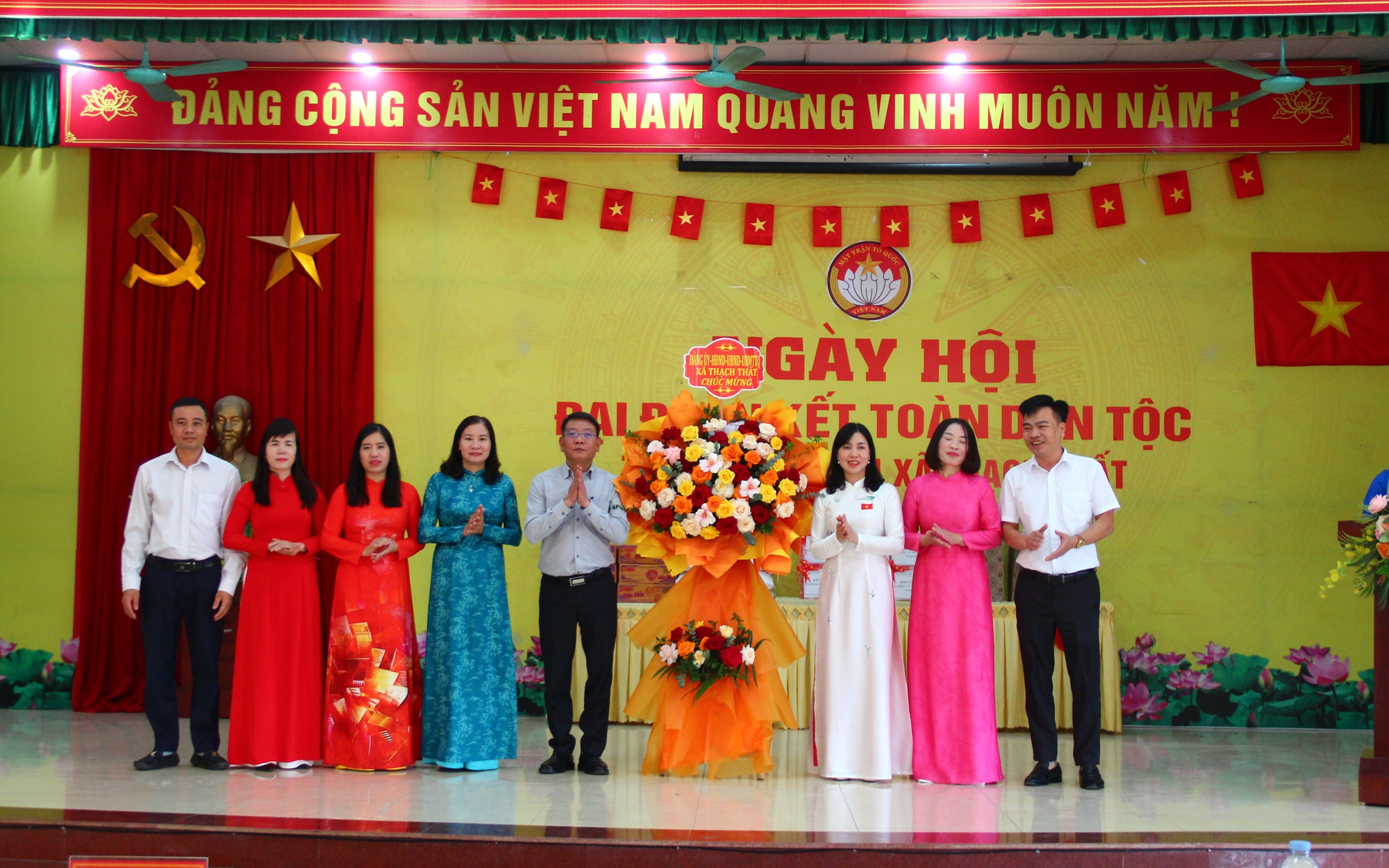 Ngày hội vinh dự được đón tiết đồng chí Trần Hoàng Linh – Phó Bí thư đảng uỷ, Chủ tịch UBND xã, đồng chí Vương Thị Thảo – Uỷ viên Ban Thường vụ, Chủ tịch Uỷ ban MTTQ xã Thạch Thất, các đồng chí Lãnh đạo đại diện cho Đảng uỷ - HĐND – UBND – Uỷ ban MTTQ, Các Ban HĐND, Ban xây dựng Đảng, Phòng VH-XH dự và tặng hoa chúc mừng.