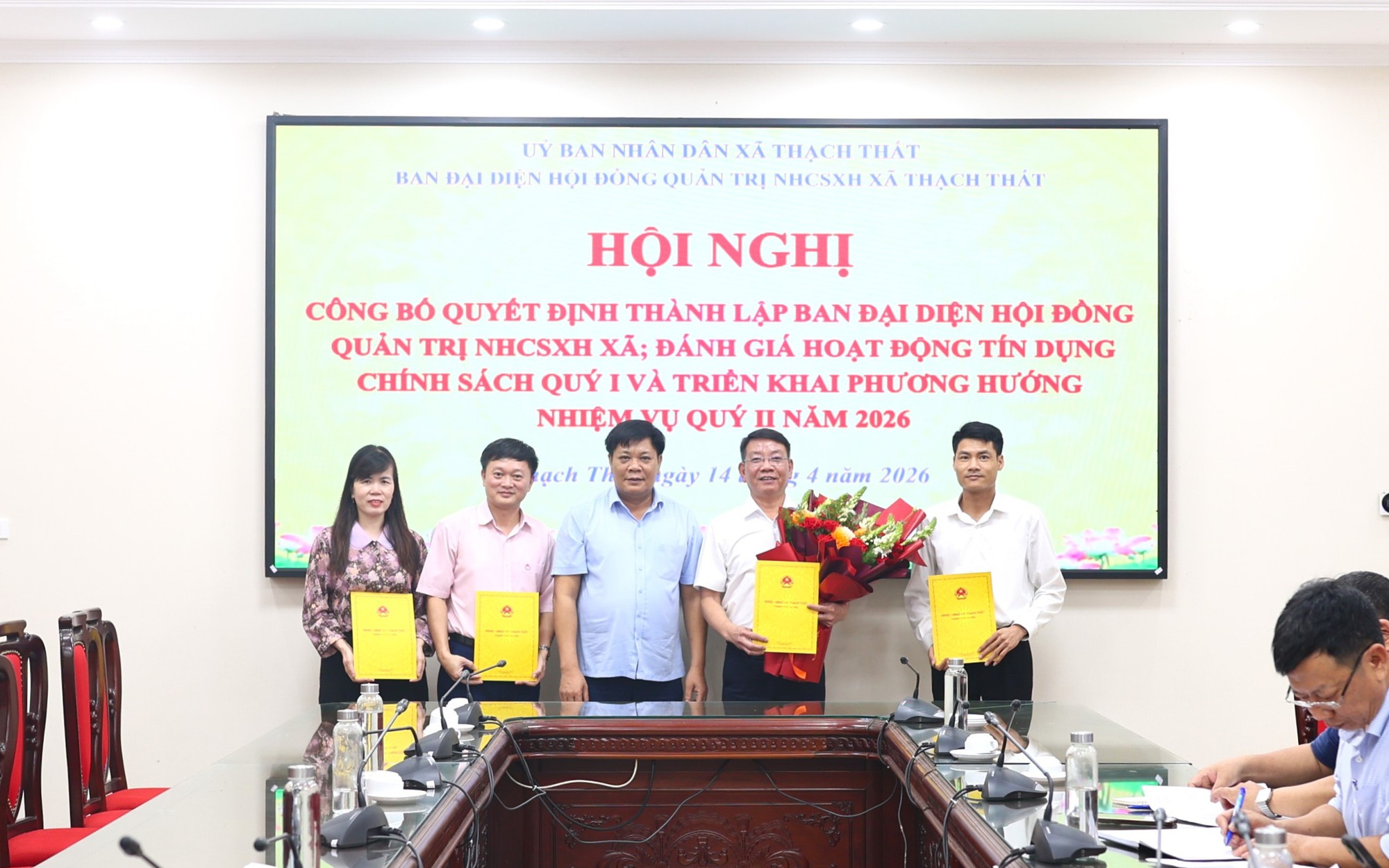 Ngay sau phần công bố, đồng chí Nguyễn Hữu Bằng - Giám đốc Phòng giao dịch NHCSXH Thạch Thất đã trình bày thông báo phân công nhiệm vụ cụ thể của từng thành viên; đồng thời báo cáo đánh giá kết quả hoạt động tín dụng chính sách quý I và triển khai phương hướng, nhiệm vụ quý II năm 2026.