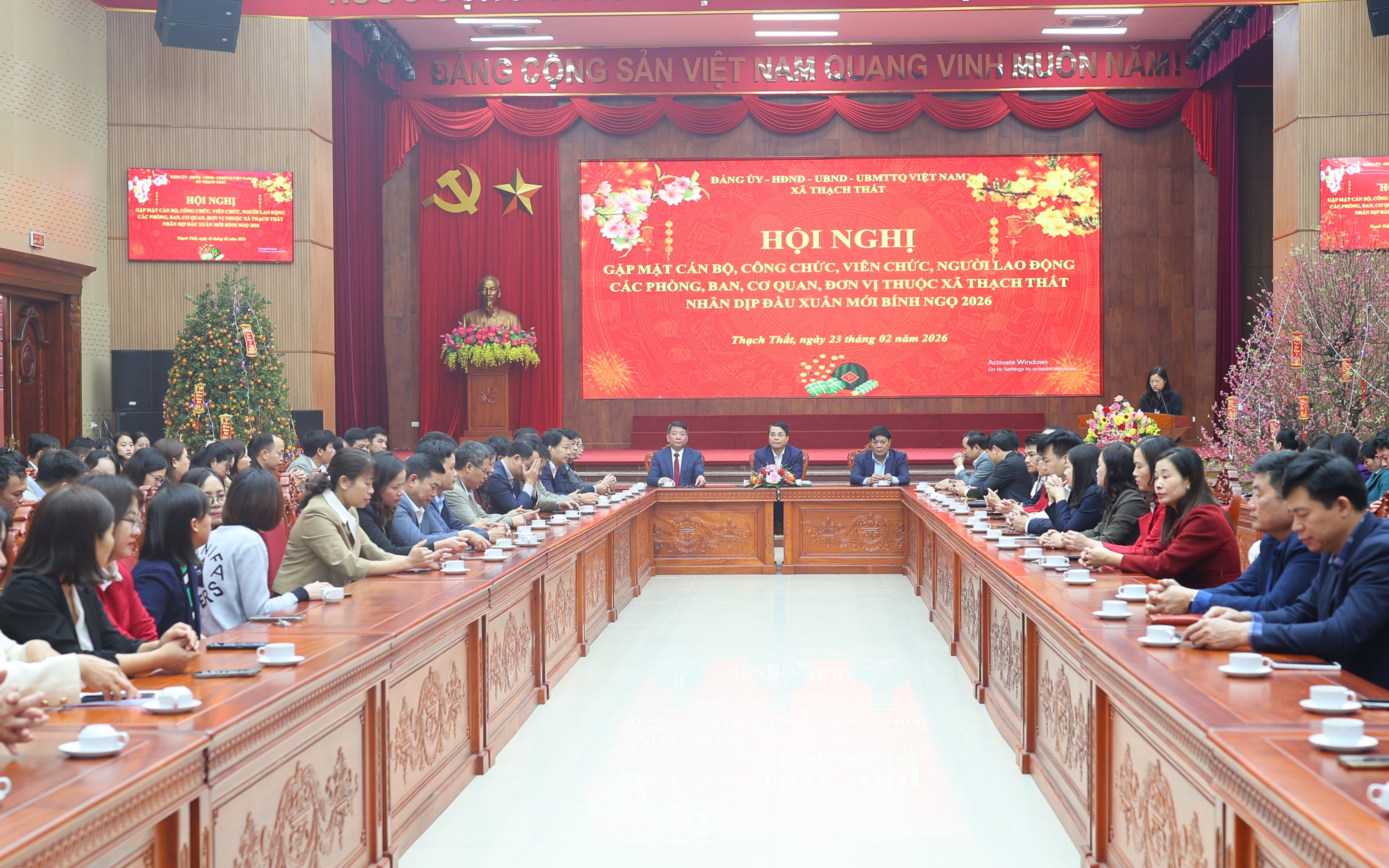Dự hội nghị có đồng chí Lê Minh Đức – Thành ủy viên, Bí thư Đảng ủy, Chủ tịch HĐND xã; đồng chí Nguyễn Đăng Quân – Phó Bí thư Thường trực Đảng ủy; đồng chí Trần Hoàng Linh – Phó Bí thư Đảng ủy, Chủ tịch UBND xã cùng các đồng chí lãnh đạo, cán bộ, chuyên viên các cơ quan tham mưu giúp việc Đảng ủy, Ủy ban MTTQ và các tổ chức chính trị - xã hội xã.