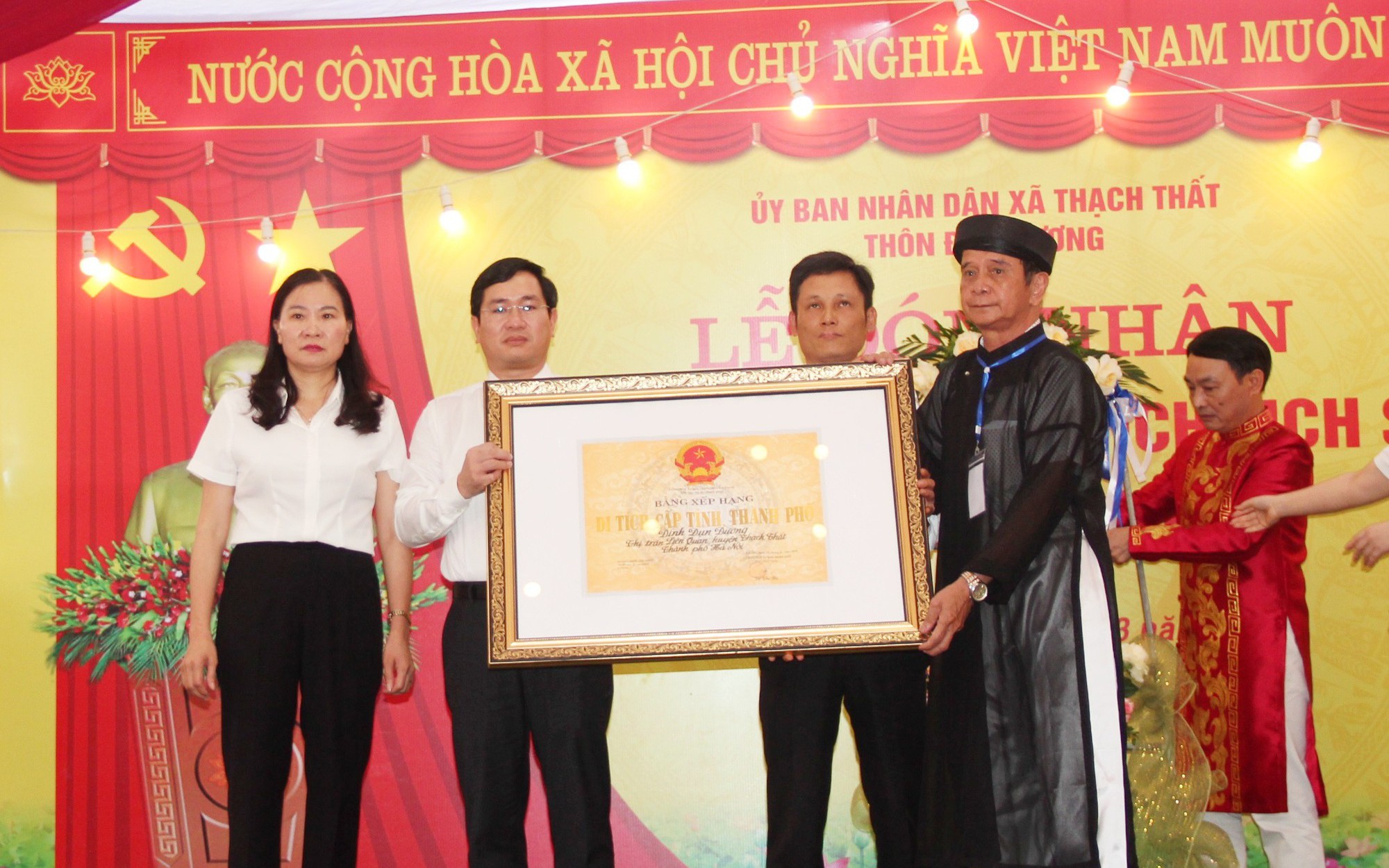 Phát biểu tại buổi lễ, đồng chí Nguyễn Trường Giang – UVBTV, Phó Chủ tịch UBND xã Thạch Thất đã nhấn mạnh rằng việc đình Đụn Dương được công nhận Di tích Lịch sử – Văn hóa là sự ghi nhận xứng đáng của Nhà nước đối với những giá trị lịch sử, kiến trúc và tín ngưỡng mà ngôi đình chứa đựng. Đồng chí Phó Chủ tịch UBND xã đề nghị cấp ủy, chính quyền thôn và Tiểu ban quản lý di tích cần tiếp tục thực hiện nghiêm Luật Di sản văn hóa, làm tốt công tác bảo tồn, tôn tạo để ngôi đình mãi là không gian tâm linh linh thiêng, đồng thời là điểm đến văn hóa giáo dục truyền thống cho thế hệ trẻ.