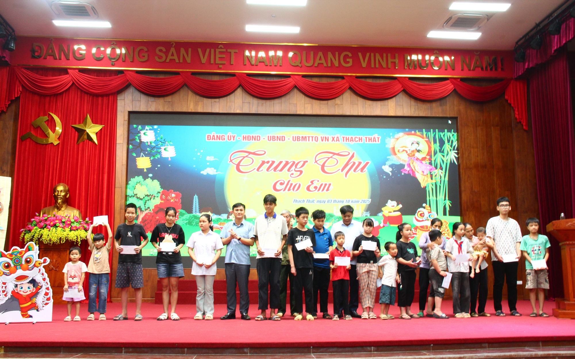 Nhân dịp này Đảng ủy – HĐND – UBND – UB MTTQ VN xã Thạch đã dành tặng 118 xuất quà cho các em nhỏ khuyết tất trên địa bàn xã, và nhiều phần quà cho các em thiếu nhi tham dự chương trình.
